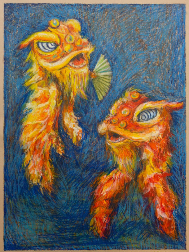 A selection of recent oil pastel and mixed media pieces exploring movement, memory, and playful storytelling.