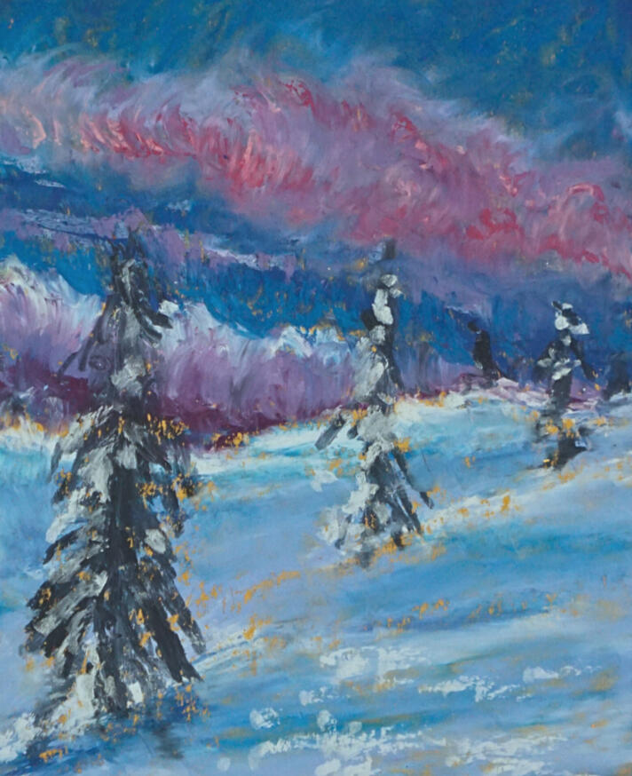 I’m a Massachusetts-based artist working primarily in oil pastels and paint. My work centers around movement, humor, and storytelling—often inspired by animals, everyday moments, and the emotional texture of memory.Alongside my personal practice, I build creative spaces that make art feel accessible, social, and fun rather than intimidating or precious.
